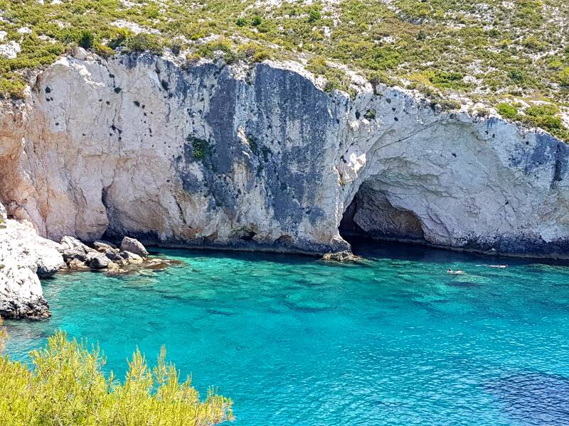 Een verstopt pareltje tussen de rotsen aan de westkust. Hier kun je heerlijk zwemmen in helderblauw water. Ondanks dat Porto Limnionas geen strand heeft, maar een rotspartij is met strandbedden maakt het er niet minder mooi op. Vanaf de strandbedden heb je een prachtig uitzicht. Op deze plek kun je ook snorkelen in de grotten.