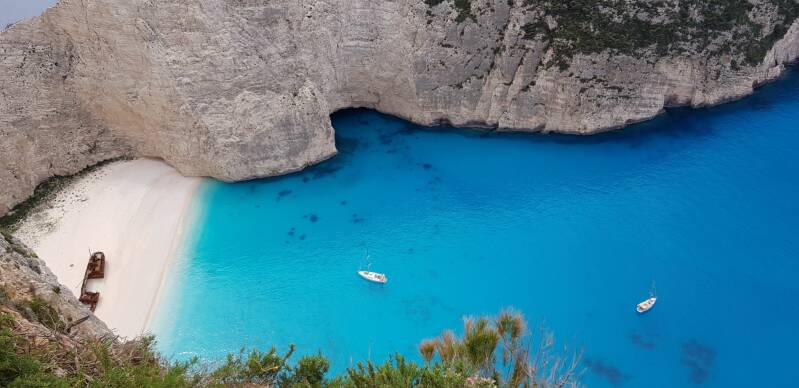 Shipwreck Beach is het meest gefotografeerde strand ter wereld. Als je er bent snap je waarom. Het strand is alleen bereikbaar per boot en heeft kiezels. Waterschoenen zijn dus geen overbodige luxe als je Shipwreck Beach bezoekt.